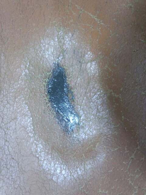 そして、まずぽっこり開いた穴を専用のパテで埋めていきます。。